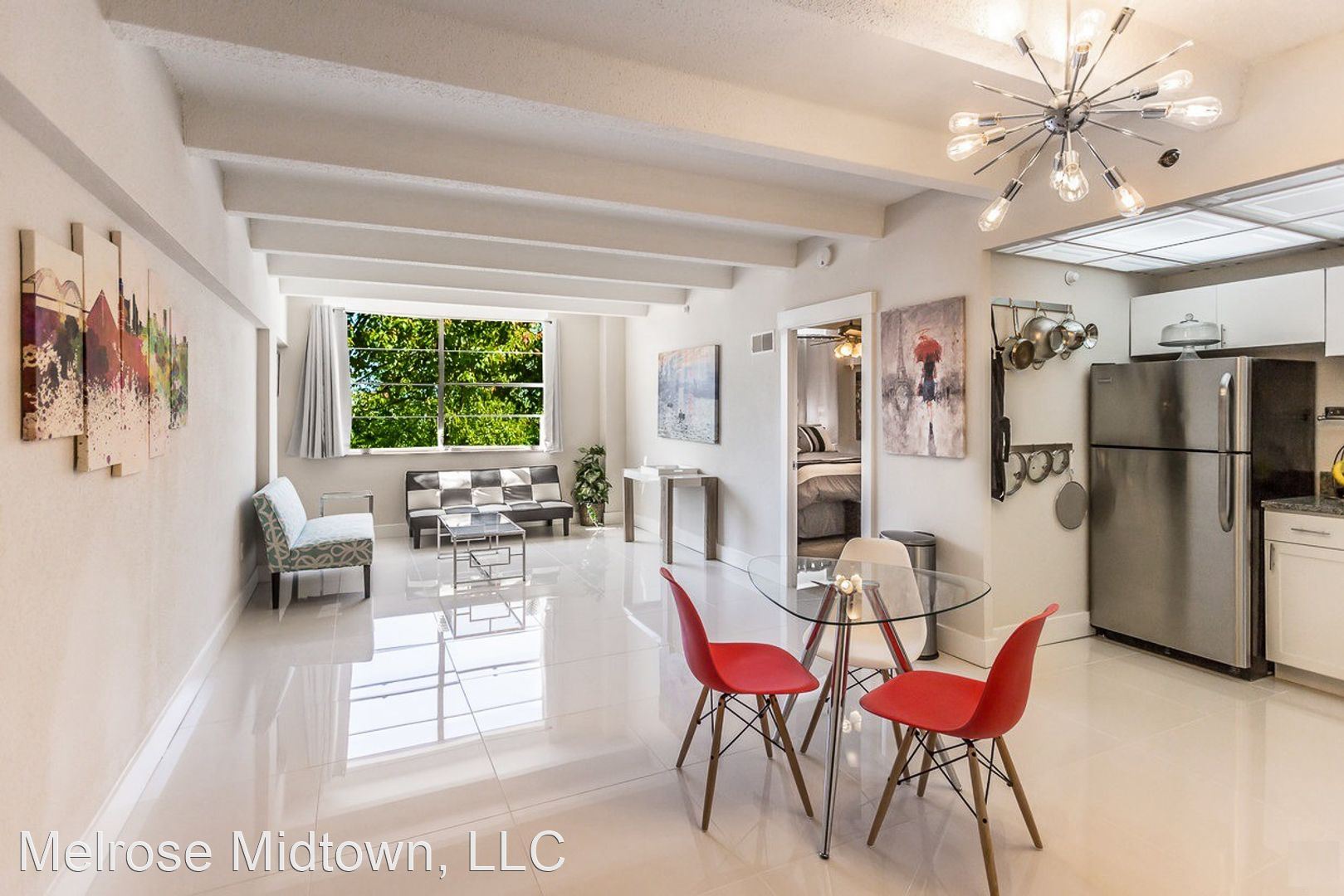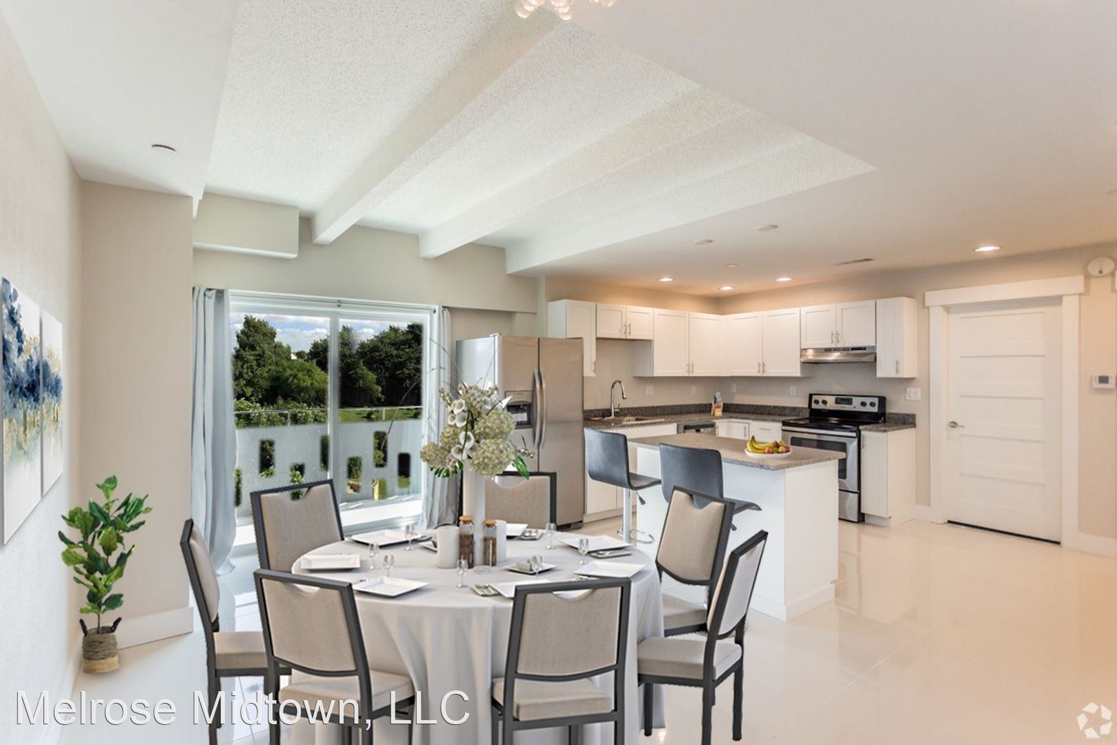 The Kira - Dine, play, and relax in the Kira's open floor plan. The Kira models, like all our apartments, were just renovated. They feature modern gleaming tile, marble bathrooms, lots of storage, and a large bedroom. A compact and complete kitchen offers granite countertops, stainless appliances, dishwasher, disposal, washer and dryer. The Kira also features a pass-through window between kitchen and dining area or a kitchen island. Some even have walk in closets. Unusual for its size, the Kira's bedroom has an “en suite” full bath: tub, commode, vanity, vanity mirror, and large closet. New ceiling fans, new flooring, and sparkling clean finishes keep your space cozy and fresh day or night. All Kira (South) apartments offer large windows and streaming sunlight year-round. For extra convenience, all Kira units are just a few steps from the building elevators. Are you ready to move? We're ready to meet you! The Melrose won the 2019-2022 award for Best Apartment Community in all of Memphis. Take a tour today and find out why. Prices are higher on the north side of the Melrose and on higher floors (including penthouse).